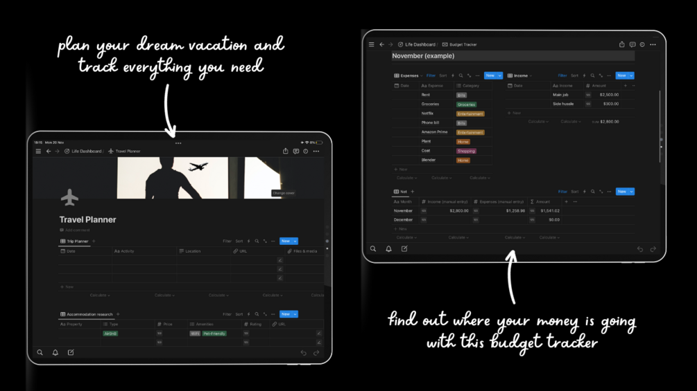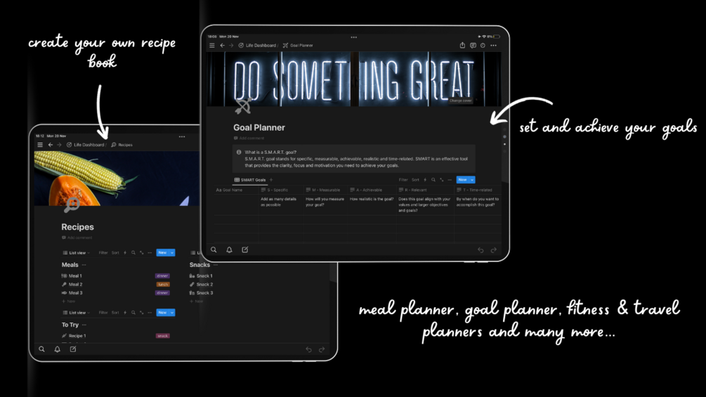 Notion Ultimate Life Template, Dark Mode ADHD Planner, Life OS Planner